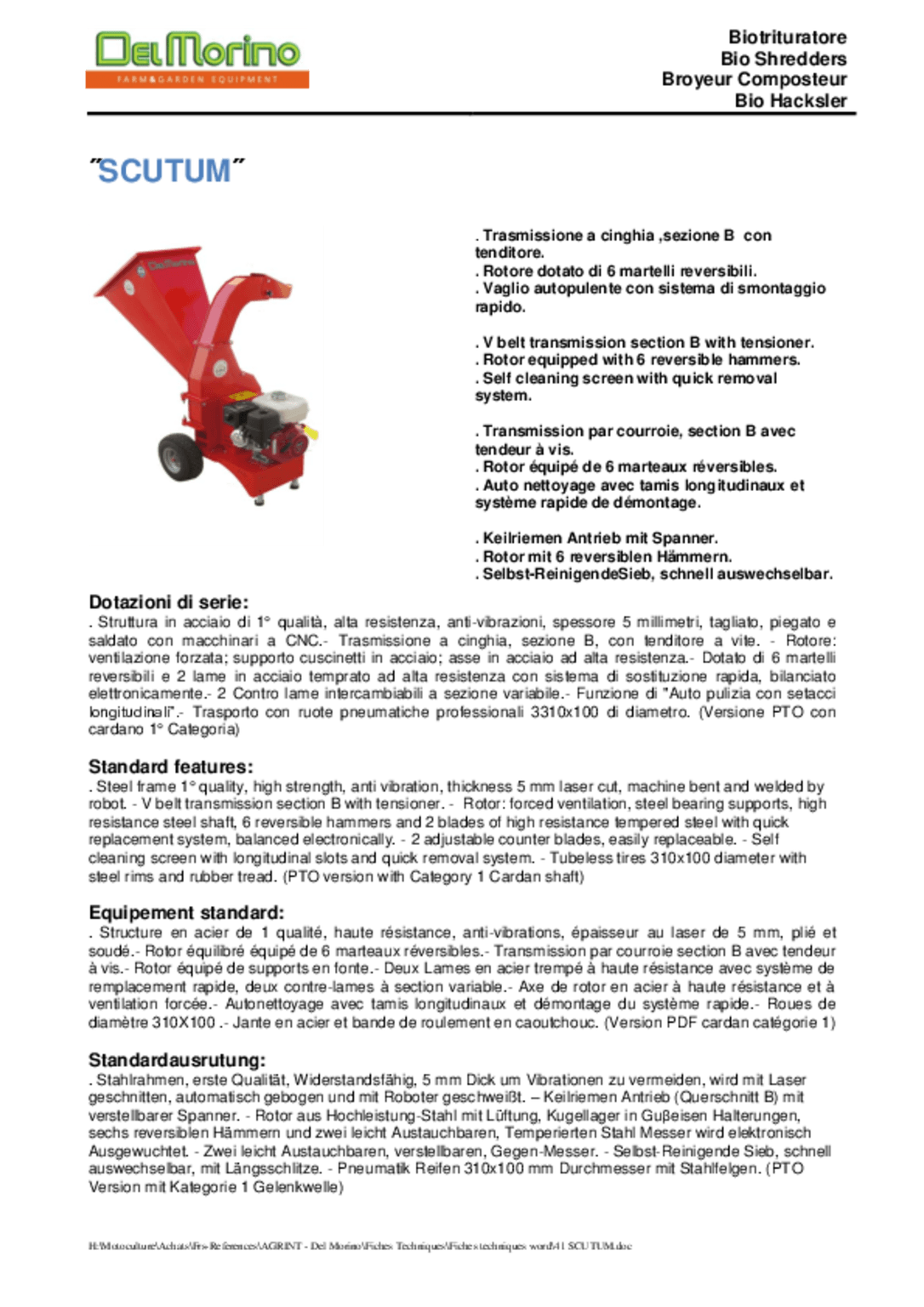 Rotor équilibré équipé de 6 couteaux révérsibles et 2 lames en acier trempé - 2 contres lames.