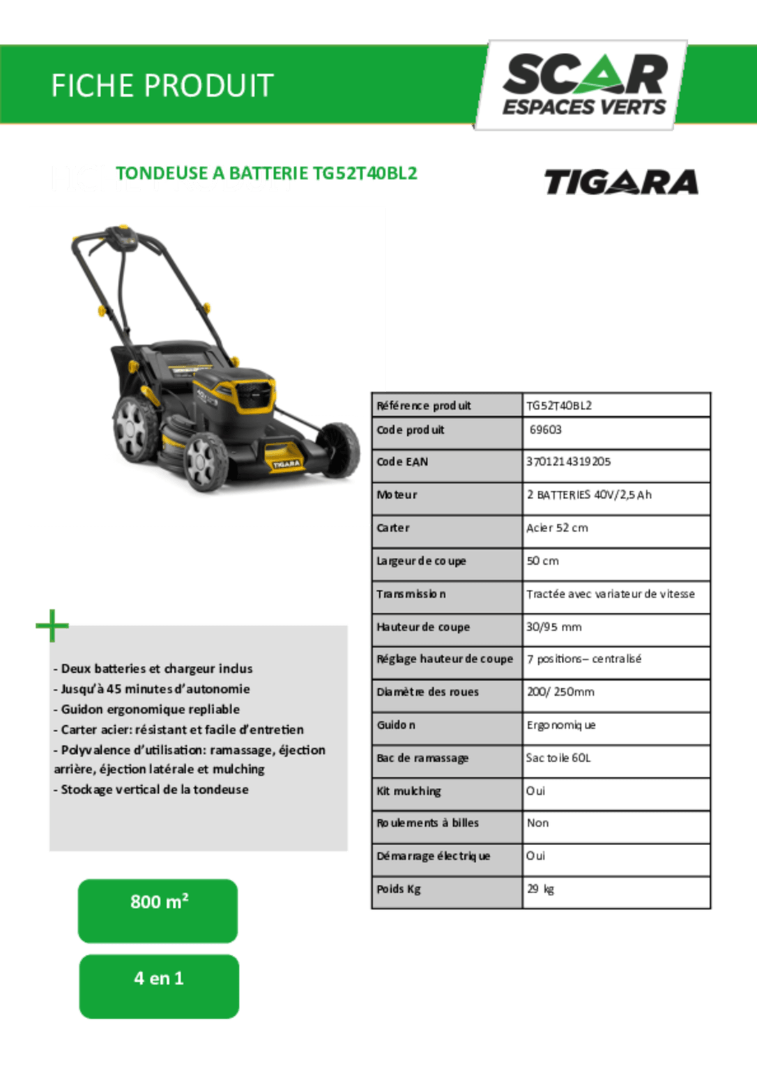 | Largeur de coupe | 50 cm |