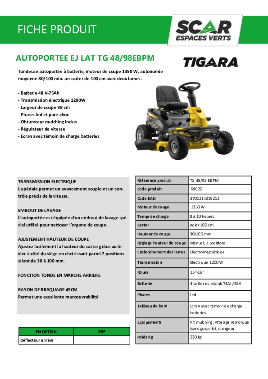 Tondeuse autoportée à batterie TG 48/98 EBPM