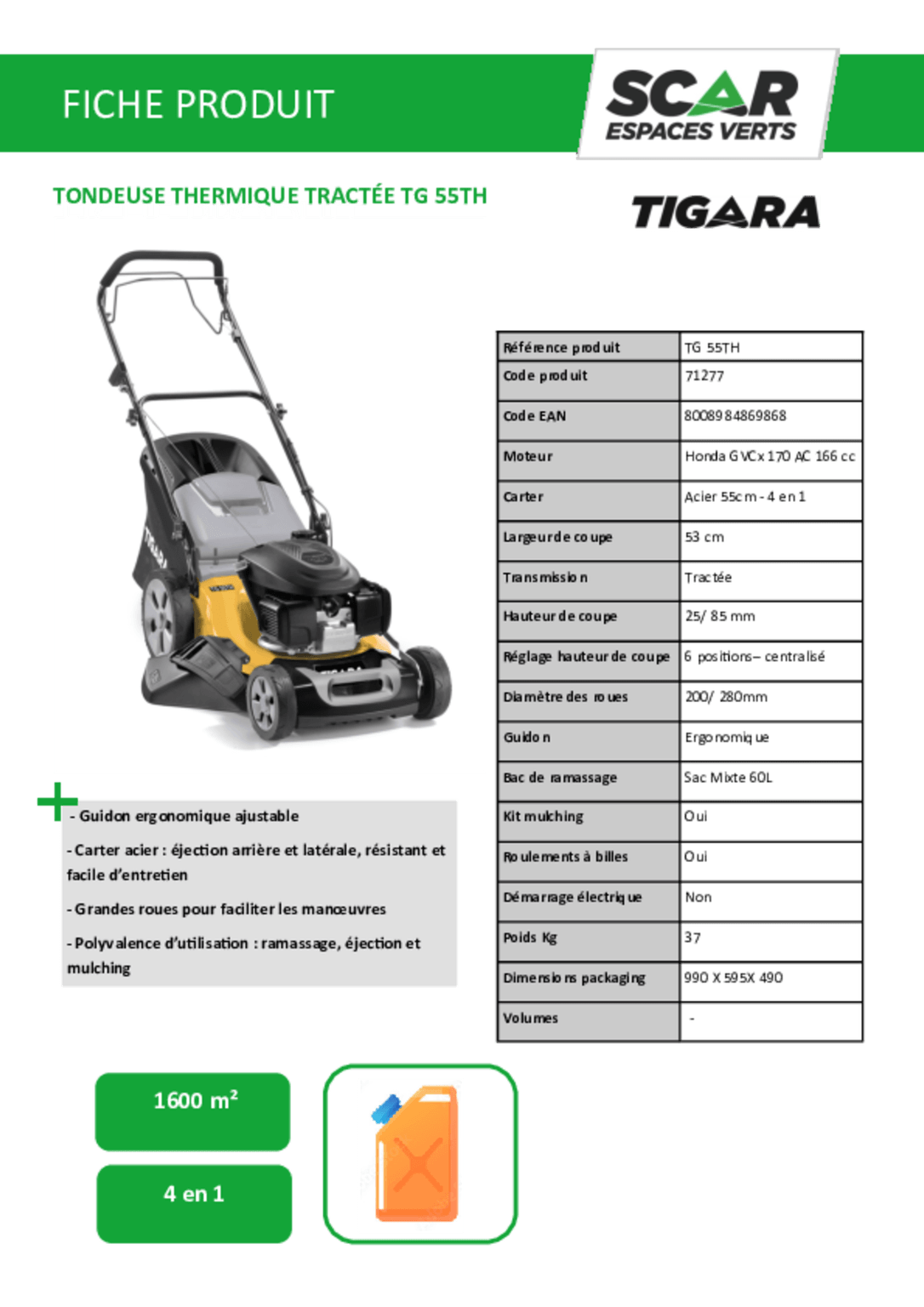 Tondeuse thermique tractée TG55TH