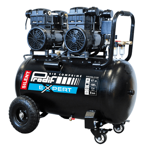 Monophasé. Sans huile. Débit aspiré : 370 L/min. Débit restitué : 260 L/min, 8 Bar. 3 CV. 220 V. Entraînement coaxial.