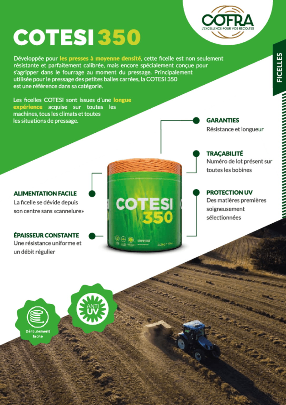 Lot de 2 bobines de 5 kg. Ficelle synthétique Cotesi. Grand diamètre pour un dévidage régulier et donc un travail sans heurts et sans arrêts. Ajout d'un additif anti-oxydant assurant une protection accrue contre la dégradation du polypropylène sous l'action des ultraviolets.