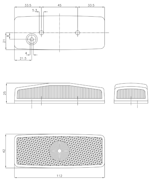 Feu de position à clipser blanc. Dim. : 110 x 140 x 25 mm. Entraxe 45 mm. Ampoule non fournie.