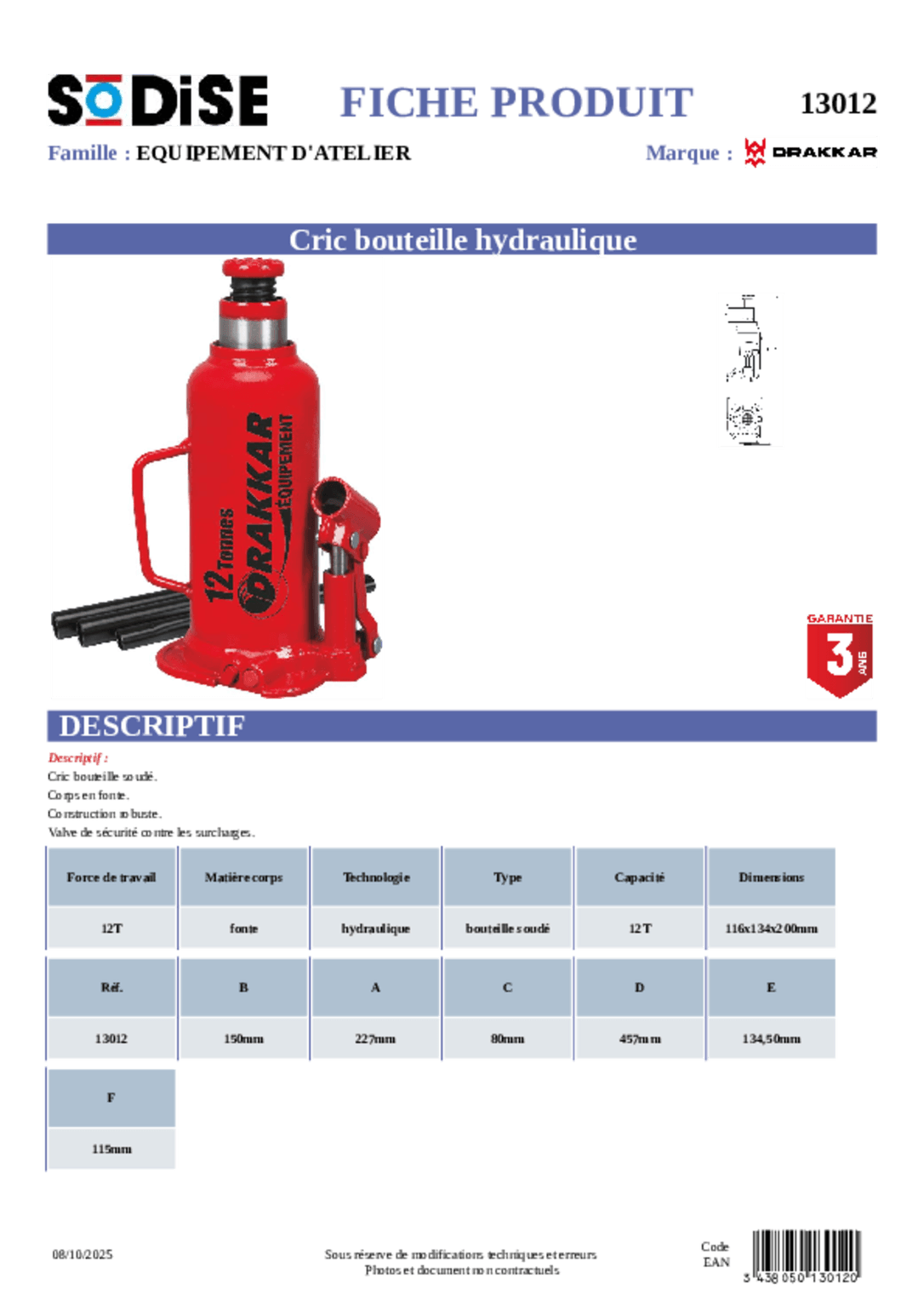 Cric hydraulique 12 T