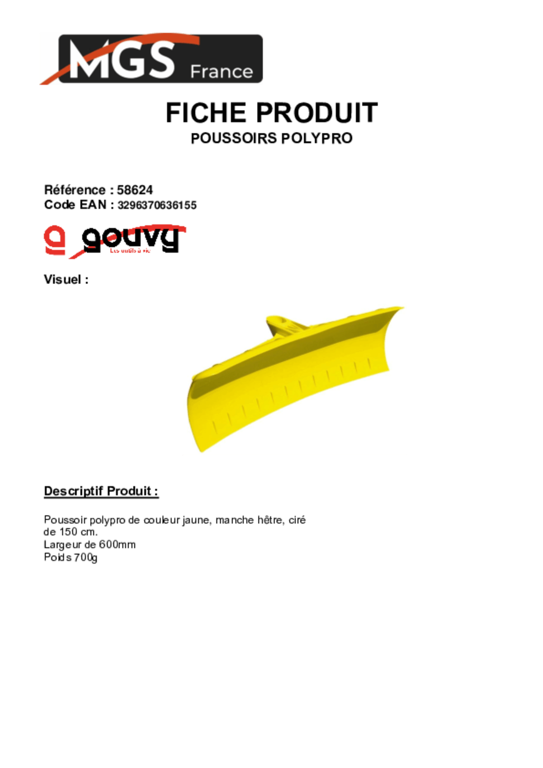 Epaisseur : 2,5 mm. Manche droit. Longueur : 1,62 m, largeur 31 cm.