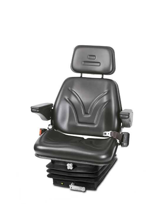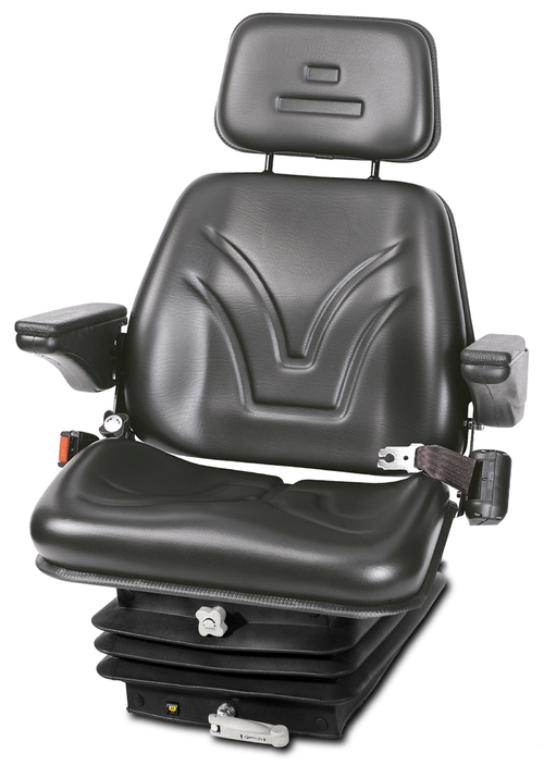 Suspension pneumatique 12 V basse fréquence. Revêtement tissu. Largeur coussin assise 530 mm. Avec accoudoirs.