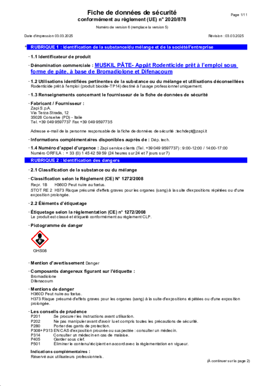 Composition : 25 mg/kg de Bromadiolone + 25 mg/kg de Difénacoum.