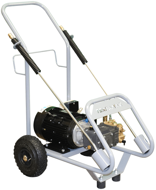 Tension : 380 V, 50 Hz. Débit maxi : 1260 L/h. Pression maxi : 150 Bar. Moteur électrique 7,5 CV - 5,6 kW, protection IP55. Disjoncteur magnéto-thermique. Pompe radiale. 3 pistons céramique usinés dans la masse. Vitesse rotation pompe : 1 450 tr/min. Câble d'alimentation de 5 m avec système anti-arrachage. Châssis acier mécano-soudé, peinture époxy. 2 roues gonflables. Équipement fourni : lance simple 900 mm à tête réglable haute et basse pression, lance turbo 700 mm, pistolet anti fatigue avec écrou tournant, 20 m de flexible 5/16 une tresse métallique. Couleur : gris métal.