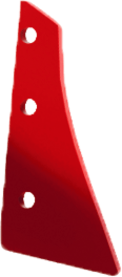 Pièce amovible protégeant l'avant du versoir. Longueur : 330 mm. Largeur : 165 mm. Epaisseur : 8 mm. Entre-axe : 145-95 mm. Pour corps de charrue n°6, 9, 28, 30. Droite.