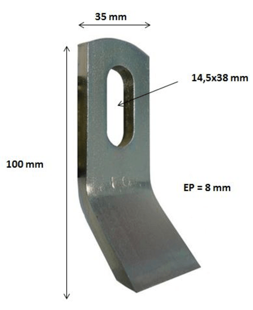 Longueur : 100 mm. Largeur : 35 mm. Epaisseur : 8 mm. Diamètre : 14,5x38 mm. Référence Noremat 1.39.230 ou 103051. Référence SMA : 8SMC100. Référence Rousseau : 5.254.26.