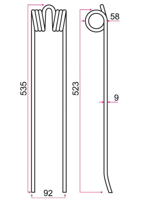 Longueur : 535 mm. Largeur : 92 mm. Épaisseur : 9 mm. Pour Drive 780/781 Hydro, R 285 DS, R315 DS, R335-4DS, R 370 DS, R 415 DS, R 420-4DS, R 460 DS, R655 DS, 655 AS, 655 ASL, R1400S/R, R 1401S/R, R 1405 S/SB, R 1425 S,R1605 rotor avant. Référence JF : 25005-234X.