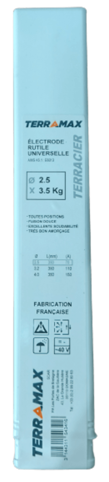 316L. A enrobage rutilo-basique à très basse teneur en carbone. Ø 2,5 x 300 x 30.